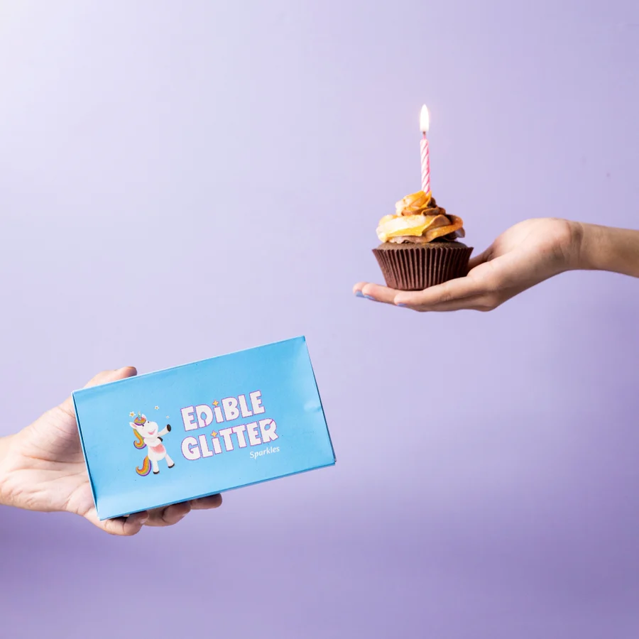 When using traditional sprinkles or jimmies, you will notice that these products not only weigh more but also cover lesser amounts of space. Compared to these products, Edible Glitter’s sparkles and flakes will cover larger spaces for the same amount of traditional sparkles and jimmies. Therefore, for the same amount you spend on jimmies to decorate smaller areas, you can instead decorate larger spaces and surfaces with Edible Glitter.